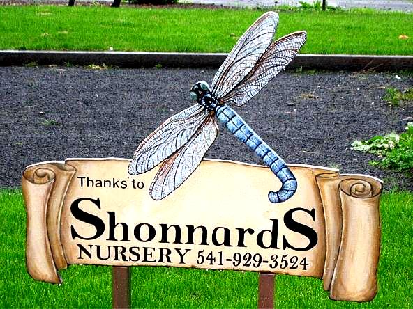 Shonnards Shonnards Nursery in Corvallis generously helped to create Clark Park by offering a wide array of plants for the park and their marquee dragonfly is at home in the landscape. |