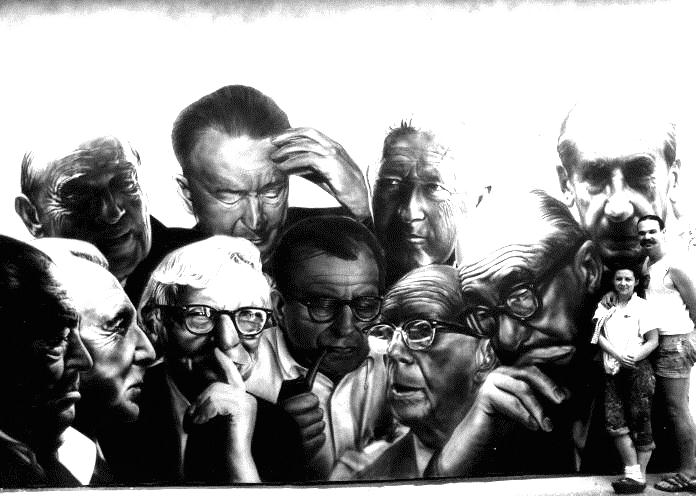 The Dead Architects A painting is about the only way to have gotten these architects in one space. Michael Tatum designed this piece and it now hangs in The School of Architecture at Kansas State University. |
