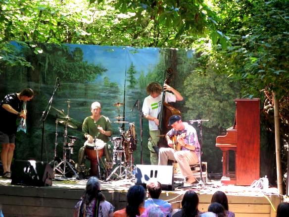 Shady Grove Stage One of the oldest music venues at the Fair, Shady Grove was originally under one of the giant oaks on the Long Tom River. To relieve root compaction the stage was moved opposite the tree. The musicians love this stage. |