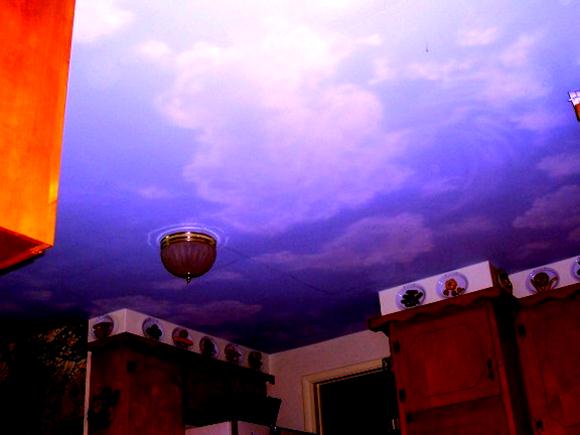 First contact us by email or phone and we will find out a few basics like where, what and when. If you are long distance, email us a photo of your environment and some information about the space where you would like the mural. We can then evaluate how best to proceed with a design. If you need help with a design or ideas for your mural, we are happy to offer many possibilities. Our design phase is included in the price of the mural. For a basic design that we do not paint we charge $150. With a design agreed upon, we will estimate what is required to access the place where the mural will go and how long it will take to complete. Frequently with cloud paintings on a ceiling, we can show you a photo from our large collection of samples and we are ready to paint!