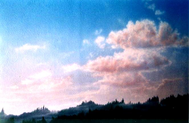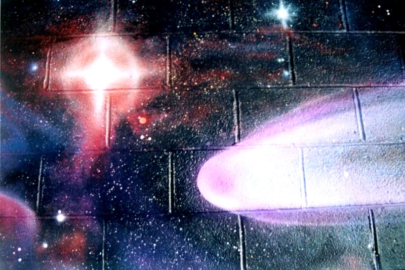 Cosmic Pizza Clouds Being a very cosmic place, the owner of this Eugene restaurant had several murals painted. Covering most of the dinning room walls, they range from easy blue skies to a fiery comet blazing through the universe. |