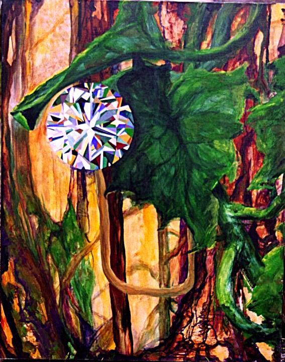 Jungle Diamond One of three paintings with a diamond as the focal point. This flower is a diamond, another has the rising sun as a diamond and the last one has a diamond as a breast. |