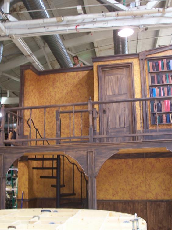 This is a huge set with tons of flats and turning wagons. Notice Claire working over the top, as usual.