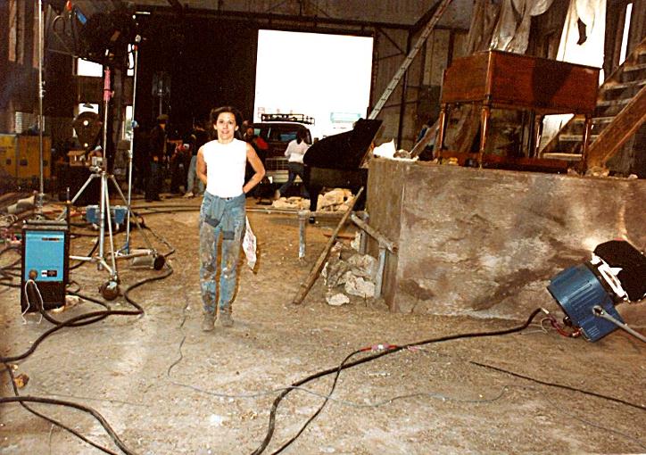 Thats All set lit up The set required painting large sheets of plastic mottled brown and covering everything with dried pigeon poop. Ah the film biz. Love it! |