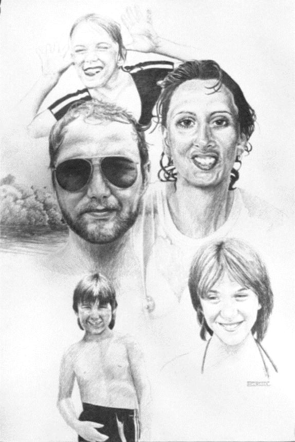 Hensons pencil on illustration board 29 inches by 30 inches My best friend growing up Archie Clemmy Henson and family at the river. sold |