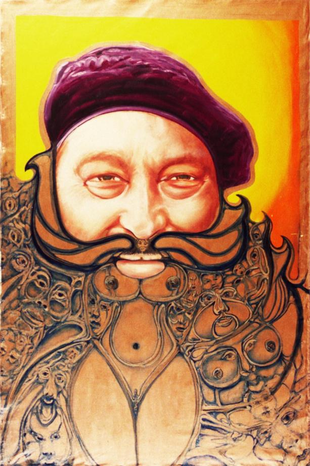 Chez Ray oil on canvas 24 inches by 36 inches sold I used a metallic copper paint in this one. Ray was the cook for the Grateful Dead. |