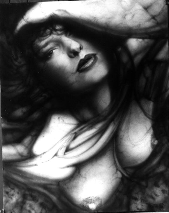 Kim 1 airbrush ink on museum board 30 inches by 40 inches sold |