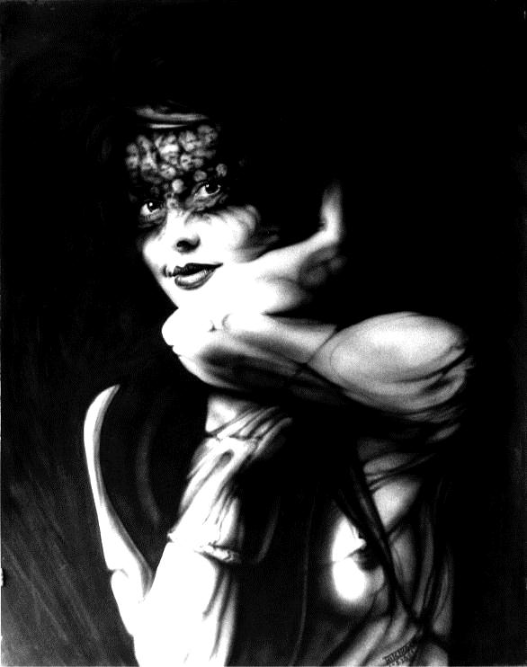 Kim 2 airbrush ink on museum board 30 inches by 40 inches sold |