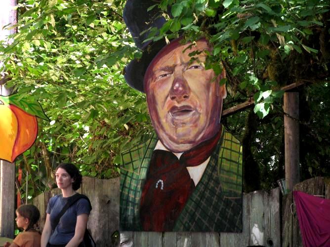 W.C. Fields Oregon Country Fair acrylic on 1/2 inch plywood 8 feet tall NFS The Oregon Country Fair has several different entertainment contingents and Vaudeville is one of them with management of three stages in particular; Daredevil Stage, Stage Left and W.C. Fields Stage. W.C Fields seemed to need to be present in face as well as spirit so we painted this piece along with a couple of cutout peaches for the audience to enjoy and everyone says that they love the portrait. He looks exactly like my great uncle Umpsted! |