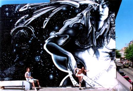 These murals are separated in this category because they are painted directly from my personal designs and are not commissioned Mae and I work together on almost every painting, including these. Though I did most of the painting Mae, like on the Hendrix mural, stood beneath me painting and kept people from standing directly under where I was painting for their safety. Thanks Mae! |